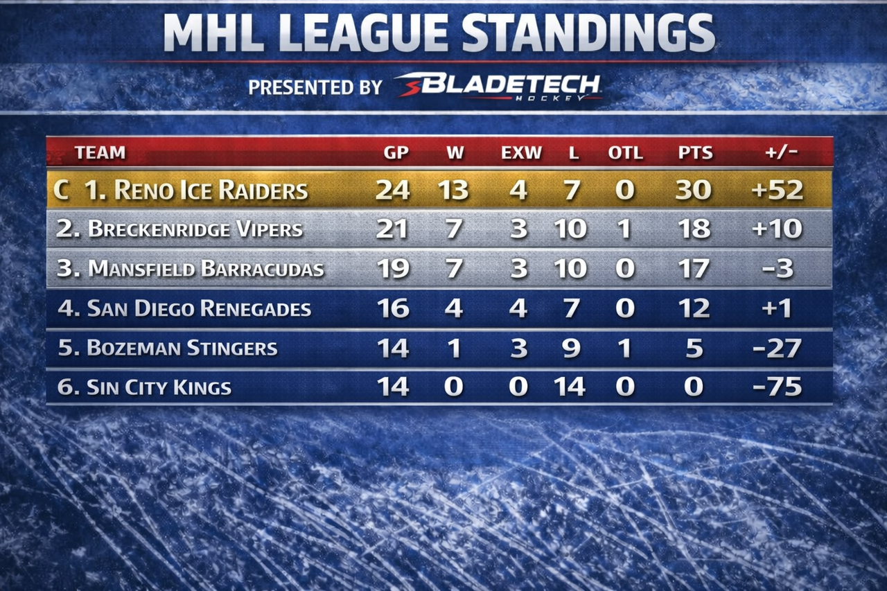 If the Barracudas win just one of those games next weekend, they’ll jump past Breckenridge in the final standings. And you know what that means... home ice advantage! That would put Mansfield hosting the Vipers in the Clear Cup Semi-Finals on April 17th and 18th. And let me tell you something home ice in playoff hockey? Huge!